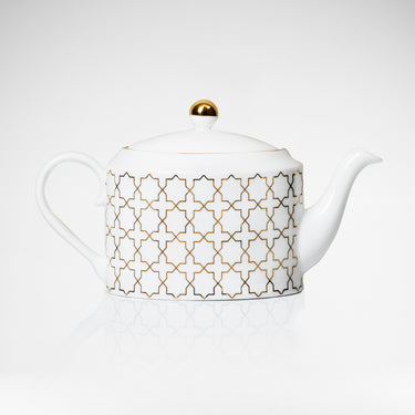 Crafted from high-quality china, the Girih Teapot features a generous capacity, perfect for serving your favourite teas. Adorned with stunning 24k gold details, it adds a touch of luxury and elegance to any table setting.