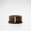 Using the finest leather and walnut, the Evolution Coaster Set features 6 reversible coasters, with light grey leather on one side, dark grey on the other. The set of coasters are housed within a beautiful walnut finished stand.