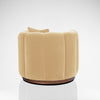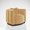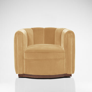 The Alphi Chair encompasses a modern design inspired by the Art deco club chairs. The chair features a swivel base and subtle curves within each section that are individually crafted and bolted together, a unique technique that requires precision and time intensive skills from our expert upholsterers.