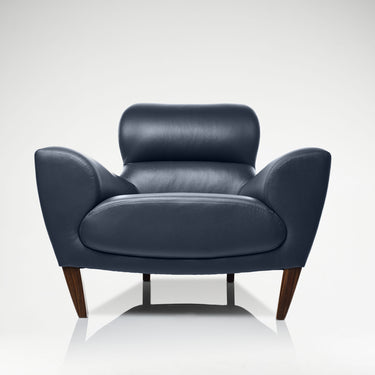 Newly upholstered in a navy blue leather from Whistler Leather, the Aston Chair has become an iconic LINLEY piece, instantly recognisable by its voluptuous curved form. Its compound curves are moulded in the same way a car seat is formed around the body, to ensure maximum comfort and relaxation. The Aston and Astonette Chairs stand on walnut legs and are available to purchase in a range of Osborne & Little fabrics and Whistler Leathers or the client's material.