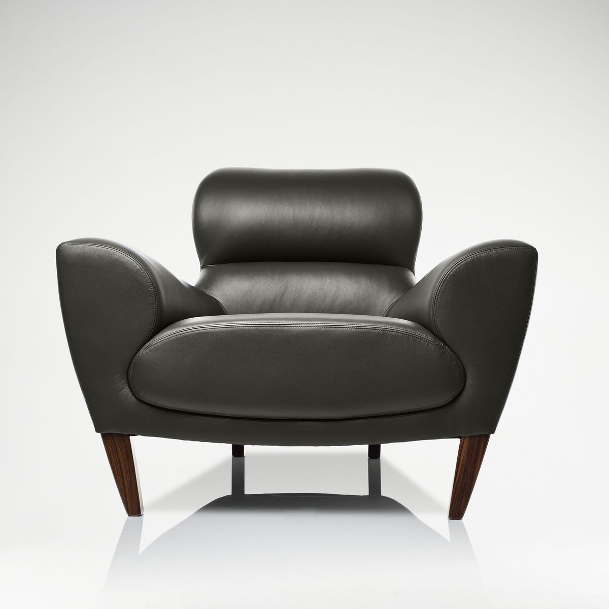 Newly upholstered in a onyx leather from Whistler Leather, the Aston Chair has become an iconic LINLEY piece, instantly recognisable by its voluptuous curved form. Its compound curves are moulded in the same way in which a car seat is formed around the body, to ensure maximum comfort and relaxation. The Aston and Astonette Chairs stand on walnut legs and are available to purchase in a range of Osborne & Little fabrics and Whistler Leathers or the client's own material.