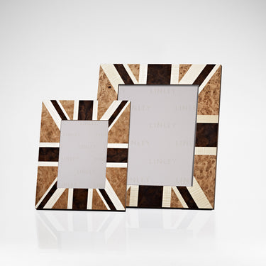 The LINLEY Union Flag photo frame is handcrafted in walnut with burr walnut, burr oak and sycamore marquetry.The LINLEY Photo Frames are ... Read more